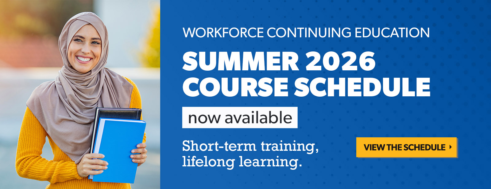 At WCC, we take the “community” in our name seriously. We extend our services beyond campus to improve our community’s quality of life. This includes offering short-term job skills training, computer literacy, English as a second language instruction, and free classes in our Adult High School and High School Equivalency programs. We also provide seminars and workshops for small business owners. Staying connected to our community is our pledge to you.