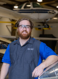 a man wearing work glasses leans on an airplane